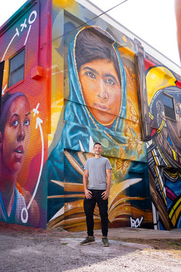 Often Rachel's murals are not mere embellishments; they are tributes to the unsung heroes and local legends who walk amongst us, their stories as timeless as the ripple they leave in the world. She breathes life into their images, elevating them from the realm of the ordinary to the pantheon of urban mythology. She believes that being influential does not mean being a celebrity, and often we wait to honor people after they're gone. She always try to tie a thread between local history, living people, and creating art that expands the collective imagination. In a world inundated with advertising, murals and public art is a link to the eternal and truthful aspects of the human experience.
